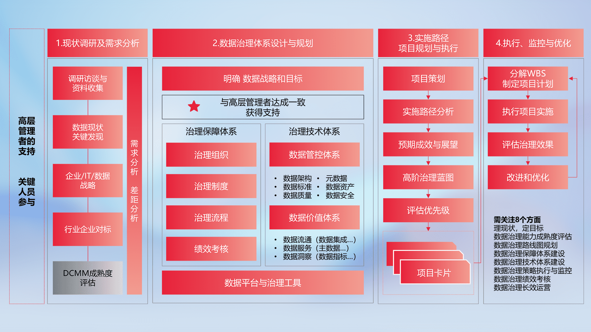 以高阶专业视角定制解决方案,,结合行业最佳实践,,覆盖数据全生命周期管理,,确保策略落地执行,,,,助力企业构建高效、、、、可持续的数据管理体系,,,,推动数字化转型。。